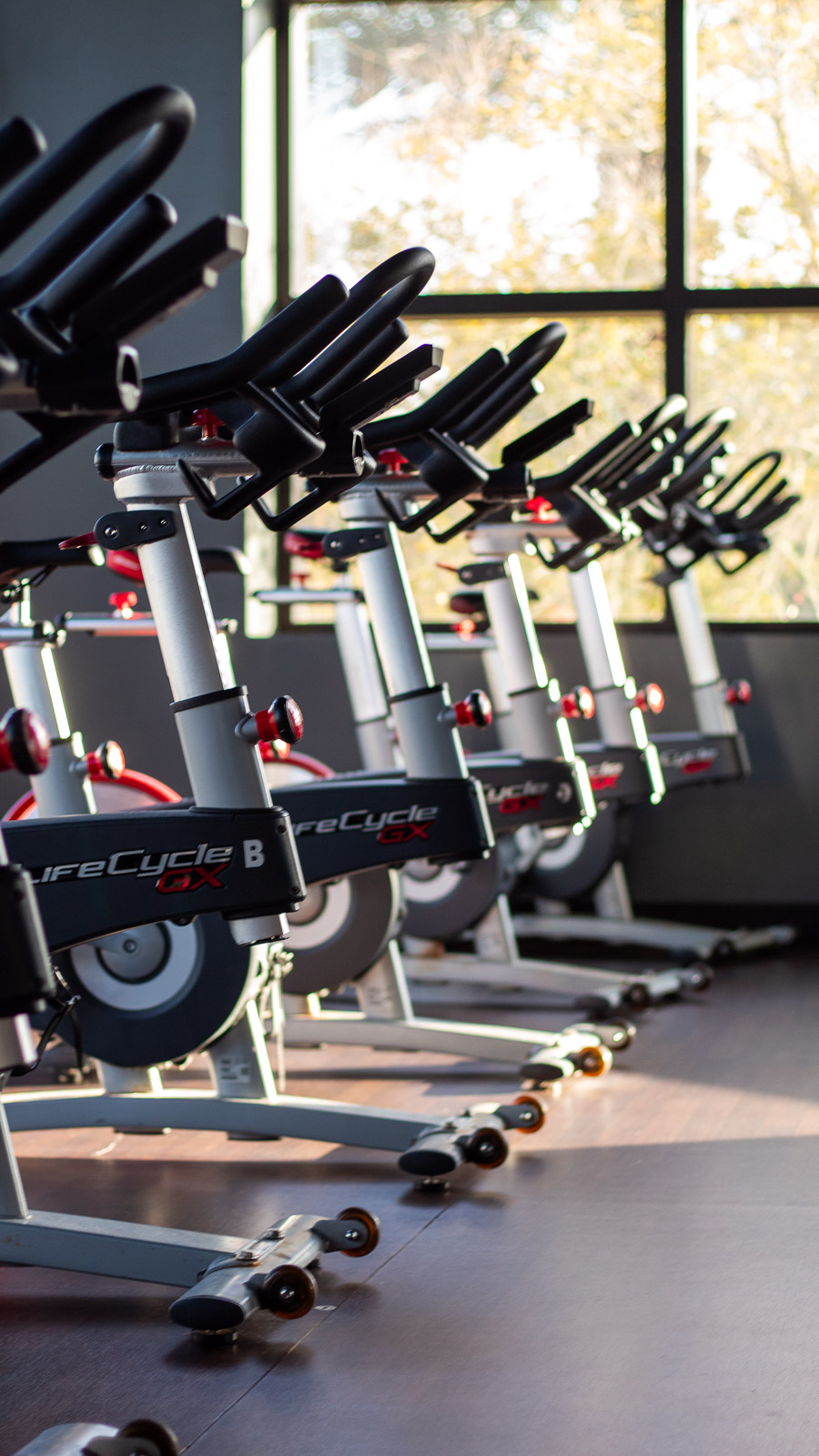 Dedicated indoor cycling studio with high-energy, instructor-led rides